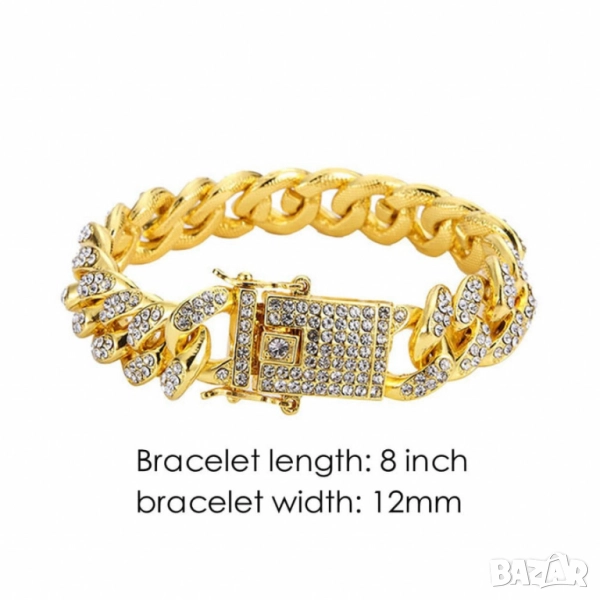 Гривна: Кубинска верига, ширина 12 мм, дължина ~20 см, инкрустирана с кристали;