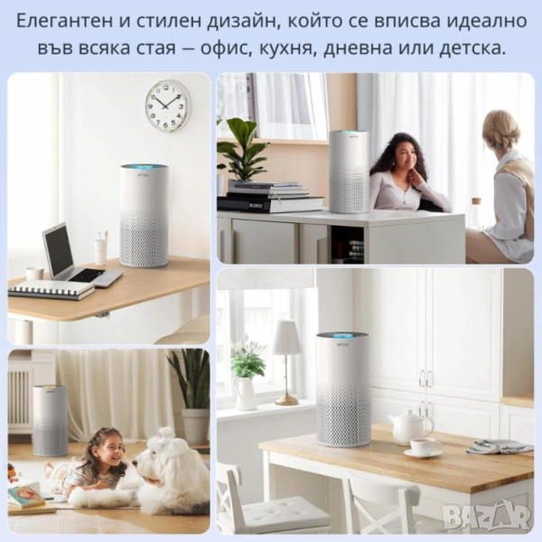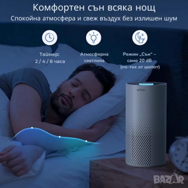 Пречиствател за въздух Afloia Kilo – 3-степенна филтрация, 1076 ft² покритие, 22 dB, 7 цвята светлин