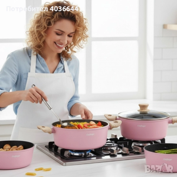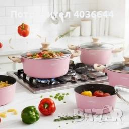 Cheffinger - Розов комплект тенджери, с мраморно покритие, здравословно готвене без залепване → Обява 51947628