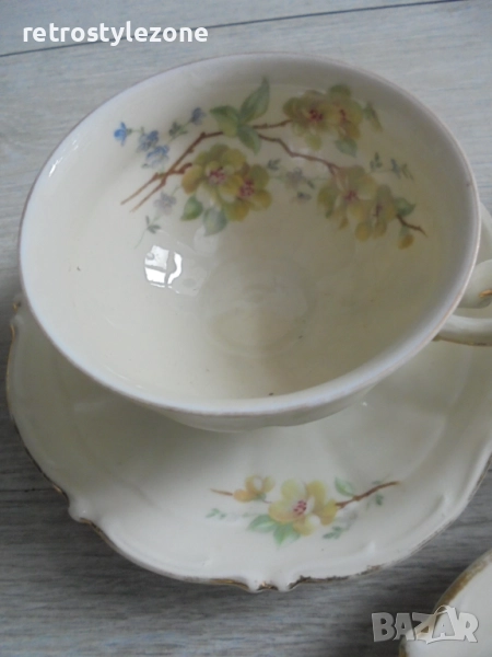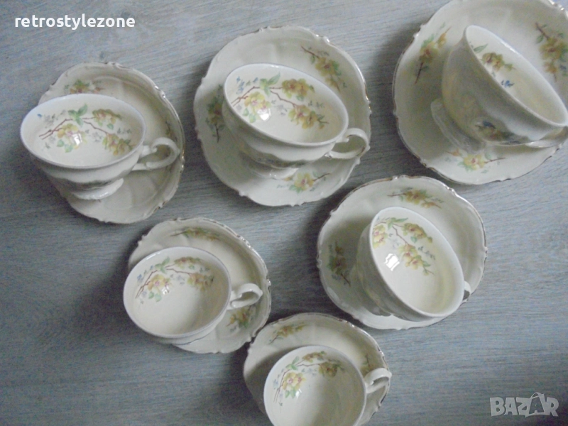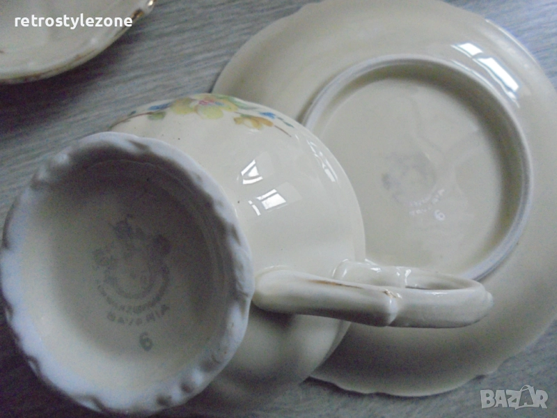 № 8312 Стар порцеланов сервиз Bavaria – чаши и чинийки с цветен декор