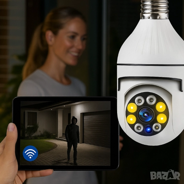 WiFi Панорамна IP Камера LYLÚ 360° във форма на крушка с нощно виждане и автоматично проследяване