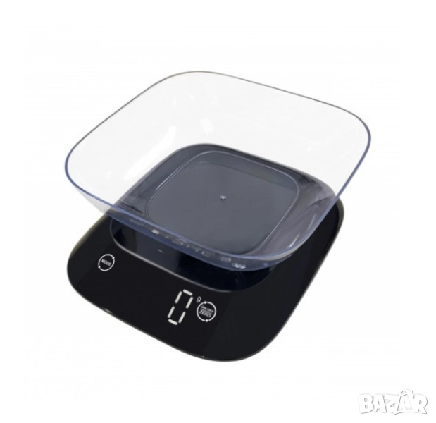 Кухненска везна с купа Rosberg Premium, 5 кг., 3xAAAбатерии , LED екран, Черен, 2 ГОДИНИ ГАРАНЦИЯ
