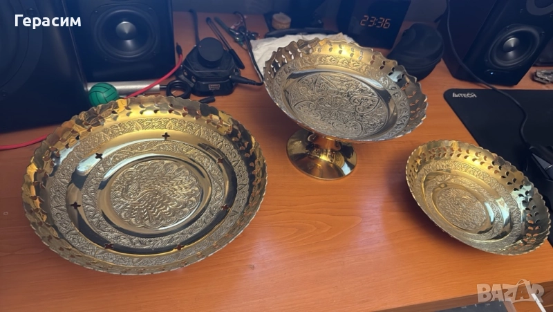 Бронзови чинии и фруктиера , бронзови свещници , купичка и пепелник → Обява 51948262