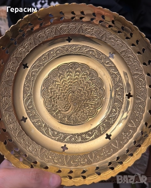 Уникални бронзови тежки чинии и фруктиера с паун 800лв