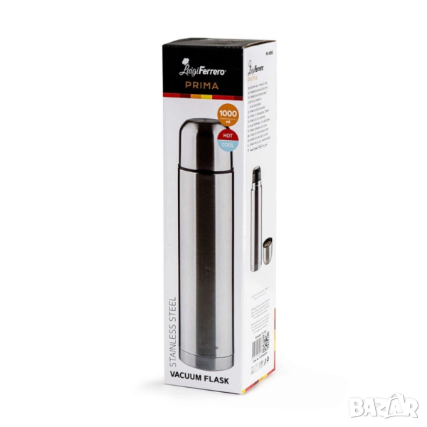 Стилизиран, надежден и ефикасен двустенен термос с вакуум от неръждаема стомана за запазване на студени и горещи напитки;