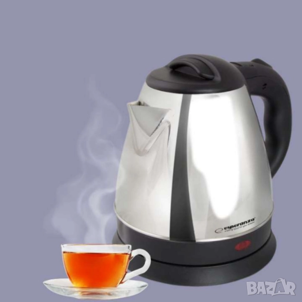 Материал: неръждаема стомана, пластмаса. Автоматично изключване след кипене. Скрит нагревателен елемент