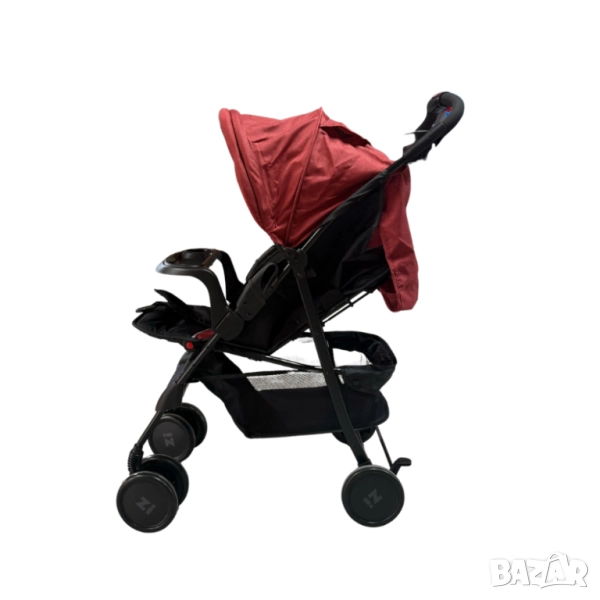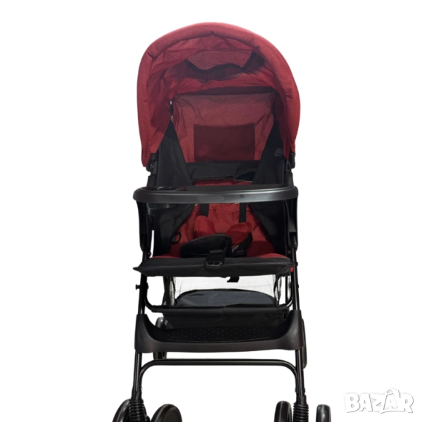 Функции: Сгъване с една ръка, регулируема облегалка и поставка за крачета, табла за дете и родител, голям сенник;