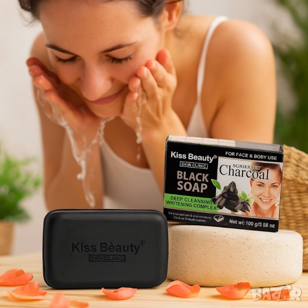 Продукт: Сапун за лице и тяло с активен въглен и зелен чай – Kiss Beauty Black Soap;