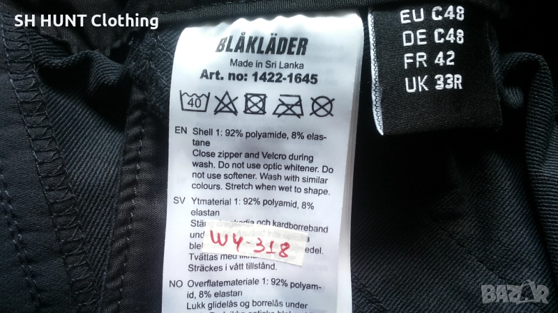 Марка: Blaklader 1422 4-Way Stretch Work Trousers - еластичен работен панталон. Използван в отлично състояние. Размер: 48 / S - M - ширина в талията при опънат ластик 43 см , ширина в талията при свит ластик 38 см , дължина 103 см.