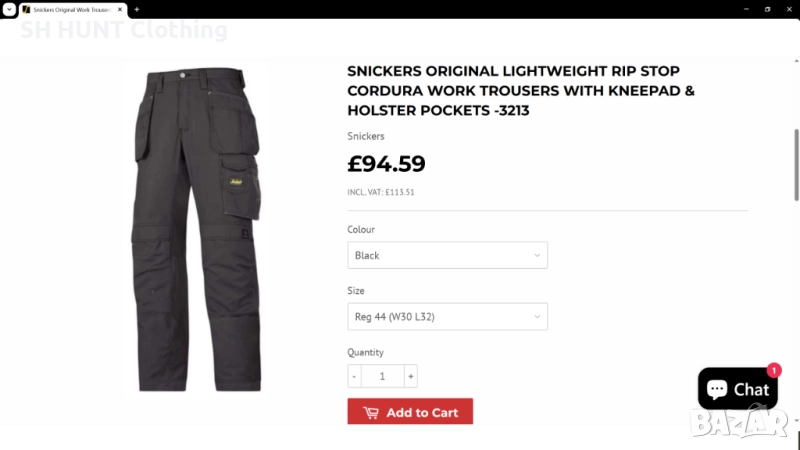 Марка: Snickers 3213 Work Trouser - работен панталон. Има джоб на коляното за наколенка , гъба.