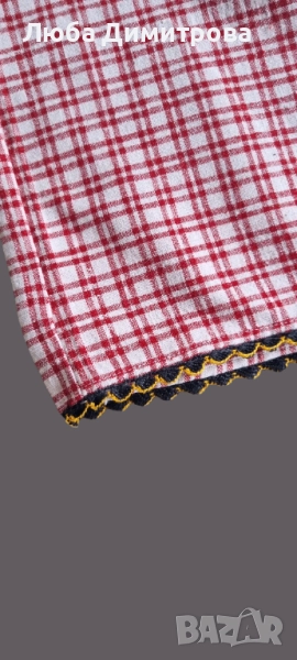 Изработена е от кариран бял и червен плат