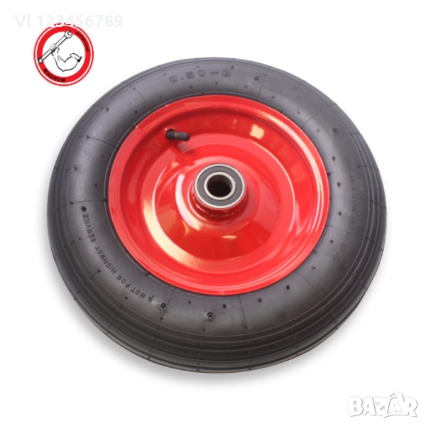 Резервноа колело с пневматична гума и тънка ос предвидено най-често като резервна част за ръчна/ бригадирска/ количка