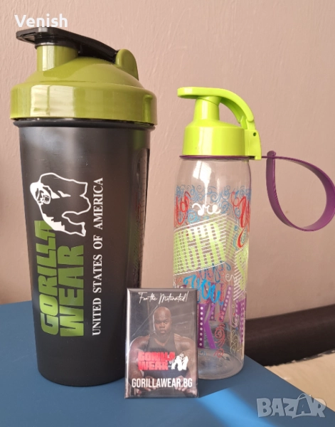 Чисто нов шейкър Gorilla wear с подарък магнит на същата марка. Ново спортно шише за всякакви дейности Цената е обща