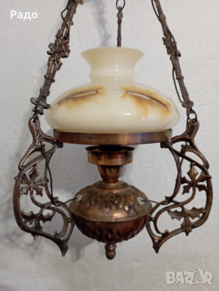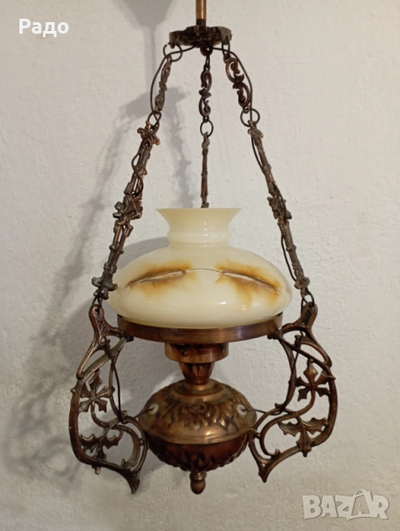 Старинен бароков полилей със стъклен абажур → Обява 51950189