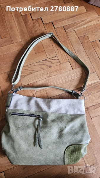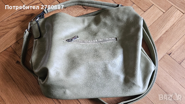 дамска кожена чанта в зелено с дълга дръжка