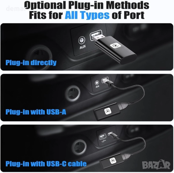 Мини безжичен Carplay адаптер за iPhone, за iOS (НЕ за Android)