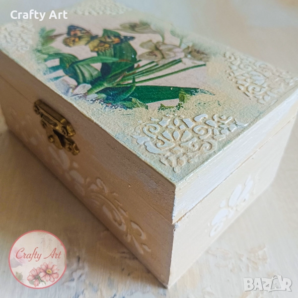 Красива и нежна дървена кутия за бижута изцяло ръчно декорирана.