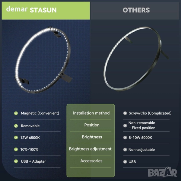 STASUN 360° светлина за дартс, бяло LED осветление, 12W 6500K, магнитно