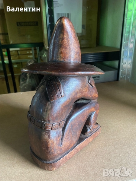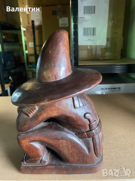 Дървена фигура “Thinking man” изобразяваща мексиканец носещ сомбреро. Ръчна изработка.