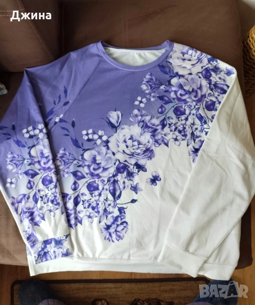 Дамска блуза с флорални мотиви, снимка 1 - Блузи с дълъг ръкав и пуловери - 51952021 Дамска блуза с флорални мотиви, снимка 2 - Блузи с дълъг ръкав и пуловери - 51952021 1/2