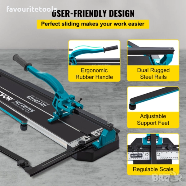 • Издръжлива конструкция: Рамката на ръчния инструмент за рязане на плочки е изработена от високо якостен алуминий. Плътната шина прави рязането по-точно и подходящо за продължителна употреба.