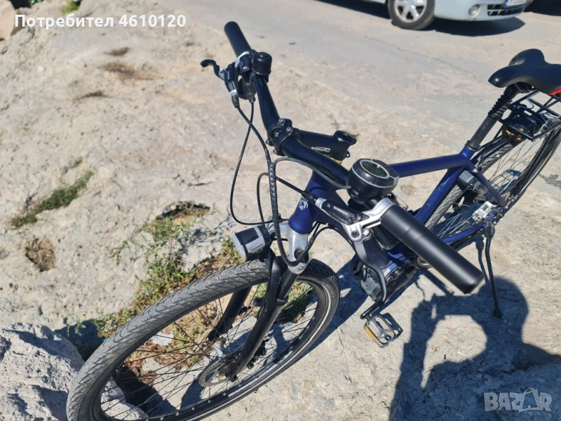 електрически велосипед Cresta с централен двигател Bosch. Високо ниво на оборудване, дерайльор Shimano Deore, хидравлични дискови спирачки, много висок клас скъпи подсилени гуми специално за електрическо колело Shwalbe Marathon E Plus с голям балон!!! Лед фар и стоп, заключване на задната капла. Велосипедът е изправен, пълен комплект с дисплей, батерия, ключ и зарядно!Цена като нов - над 4000 евро!