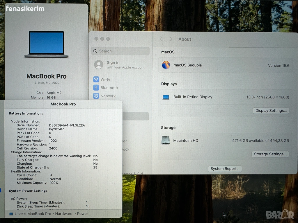 Mакбука е седял за резервен в офис, пускан е няколко пъти и съответно е в безупречно визуално и техническо състояние. В комплект със зарядно у-во + кабел. Батерията е в normal condition, само на 9 цикъла е, на 100% здраве естествено и издържа до 16 часа. Инсталиран най-новия Mac OS Sequoia 15.7, преди пускане на обявата, без акаунти, iCloud пароли и т.н.