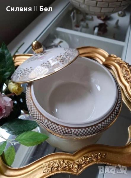 Луксозна Порцеланова Кутия (Бонбониера) с Позлата и Капак