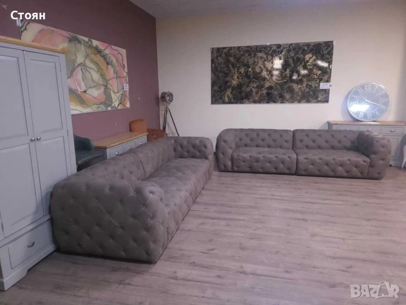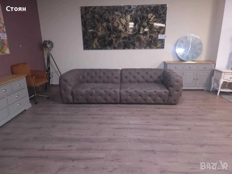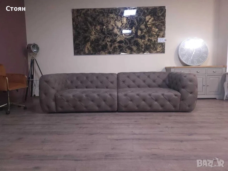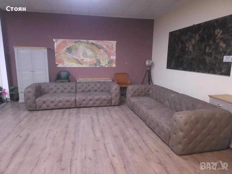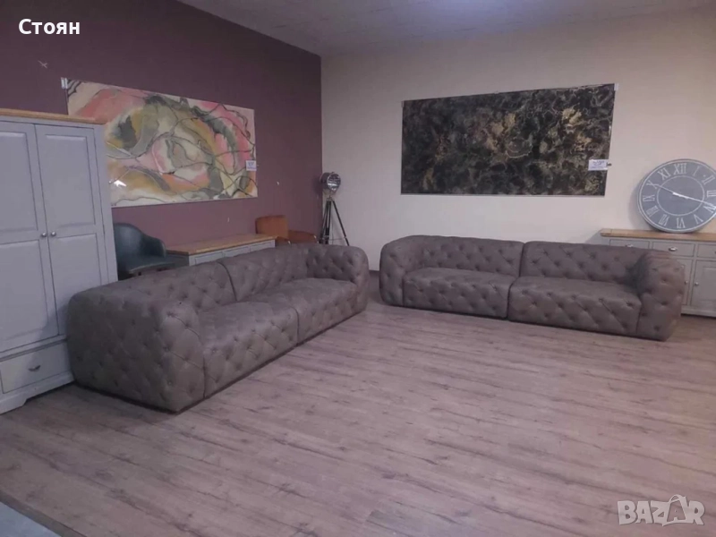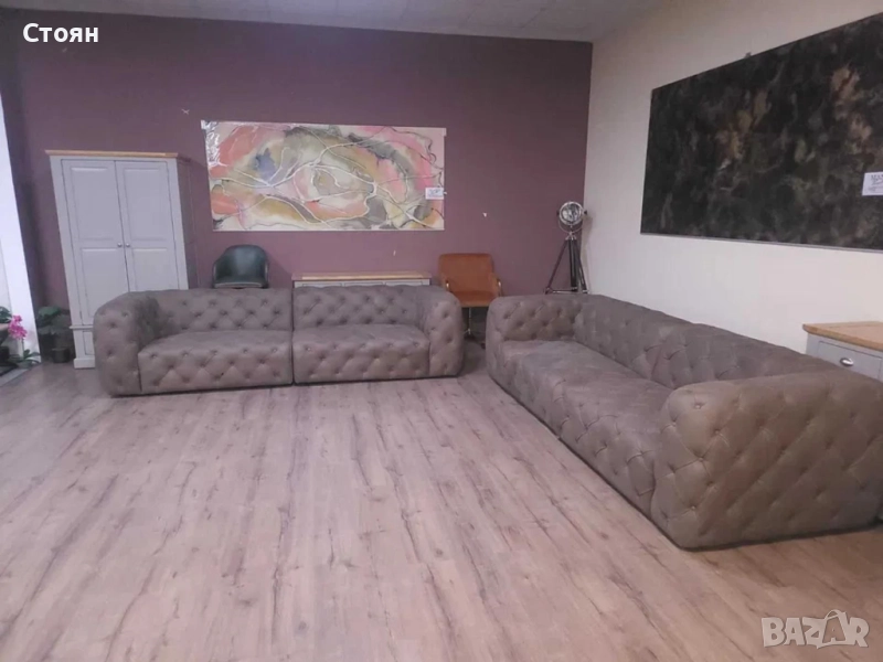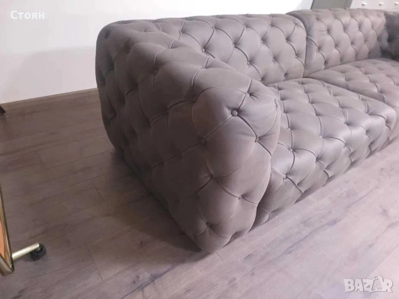 Дизайнерски кафяви кожени дивани две четворки Честърфийлд
