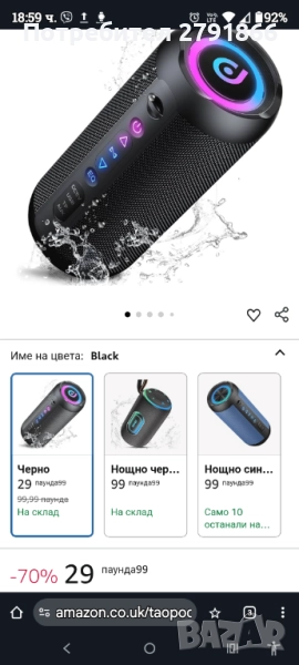 Преносим Bluetooth високоговорител taopodo до 30W стерео звук, 3 EQ режима и RGB светлини,IPX7