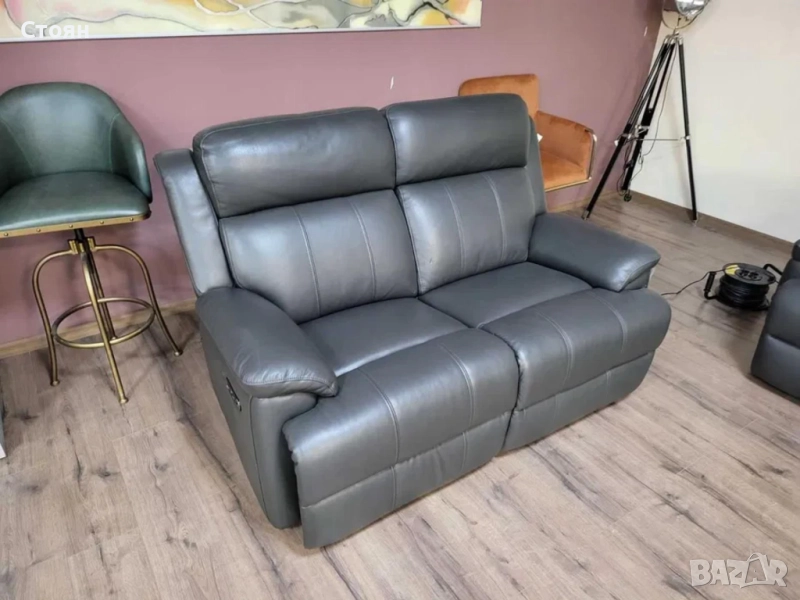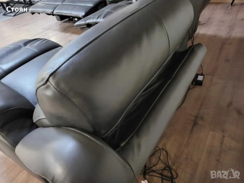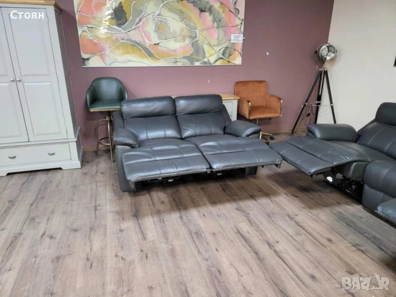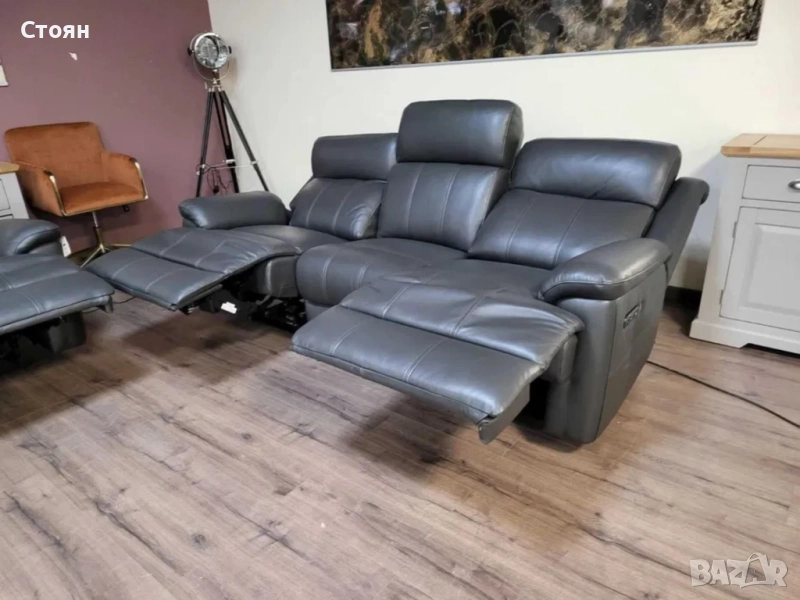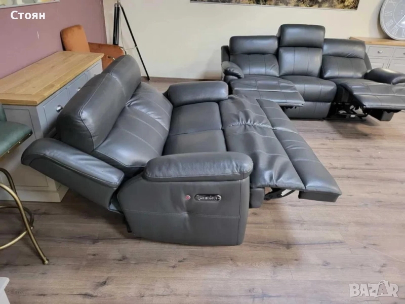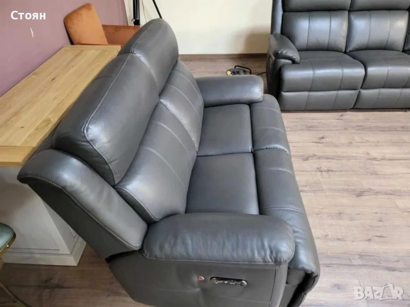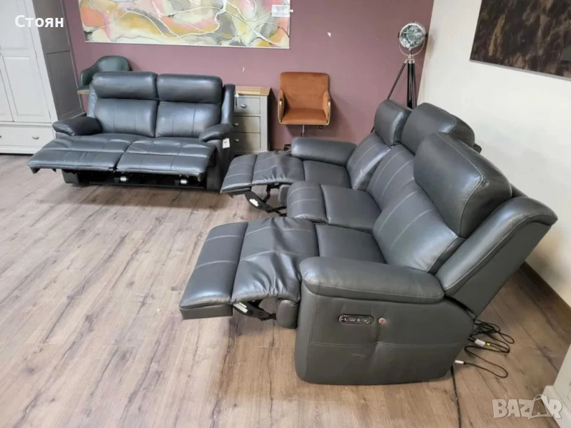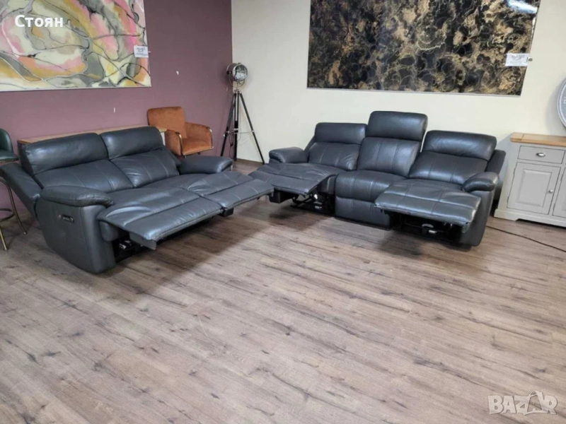 Тъмно сиви кожени дивани тройка и двойка с ел. релакс механизъм → Обява 51954890
