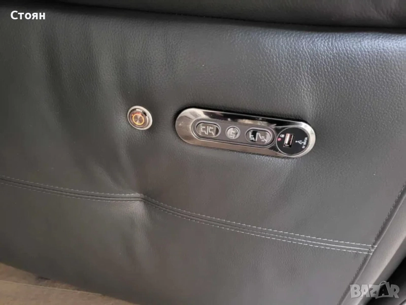 Тъмно сиви кожени дивани тройка и двойка с електрически релаксиращ механизъм за краката и облегалките. Седалките са също така със затоплящ механизъм.