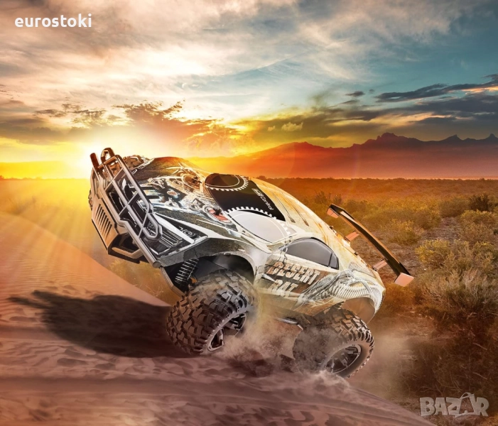 С 2.4 GHz дистанционно управление като пистолетен предавател - благодарение на впечатляващия си размер, това е правилната играчка за дейности на открито за малки и големи.