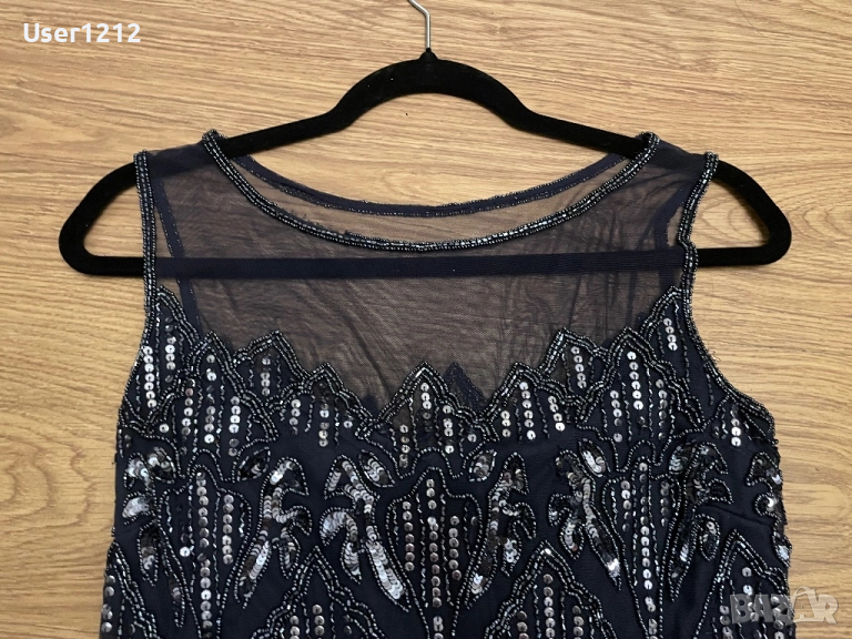 Разкошна, официална рокля от тюл и пайети . Отдолу с подплата. Много елегантен модел . Стои прекрасно . При интерес ще посоча точни размери