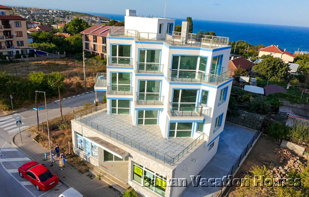 Апартаментът е с жилищна площ от 95 м2 и се намира на втори етаж в жилищна сграда с 5 апартамента. Състои се от входно антре, складово помещение, голяма всекидневна с кухненски бокс (22 м2), спалня, баня и три балкона, от които се открива великолепна гледка към пейзажа и Черно море.