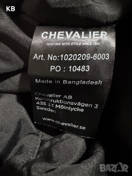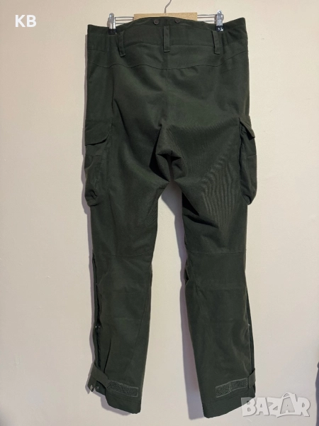 Състояние 9.5/10.Размер талия 47см., дължина на крачола 110см.Панталон на шведската фирма Chevalier, модел Basset. Изработен от 100% полиестер и е разработен така, че да бъде максимално тих. Снабден с водо и ветроустойчива мембрана Chevalite, която предпазва от дъжд и сняг, и диша, без да изпотява. Подплатата е изработена от 100% полиестер. Крачолите в долната час и краищата им са подсилени с Cordura Ripstop. Снабдени с куки за прикрепяне към обувка и водоустойчиви ципове за по- лесно обуване.