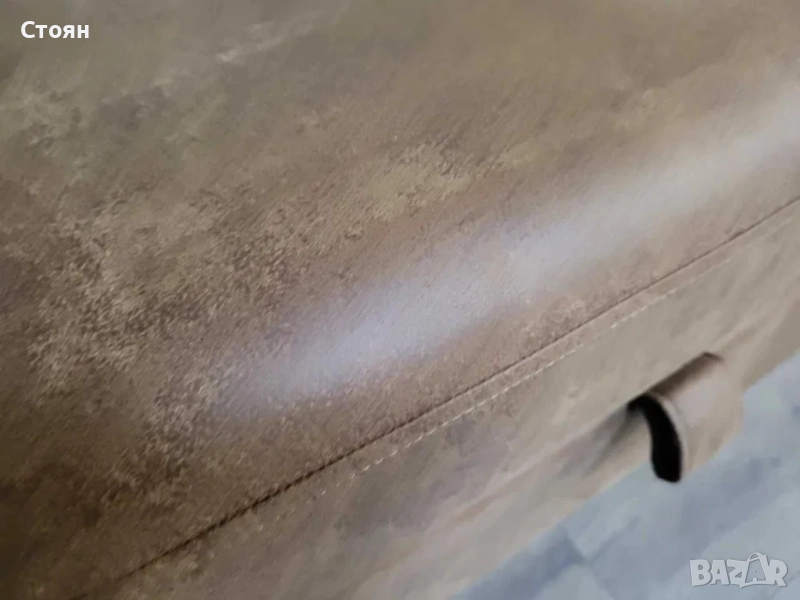 Кафява табуретка от плат с функция ракла. Подходящ за допълване на интериора на всекидневна или спалня.