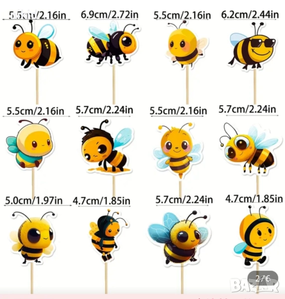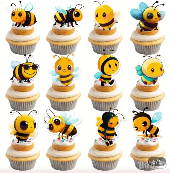 12 бр пчела пчели пчелички картонени топери топер декор торта мъфини кексчета украса парти → Обява 51956584