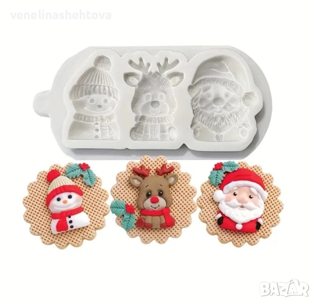 Дядо Коледа снежен човек елен Силиконов молд за смола гипс фондан за декорация на торта → Обява 51957241
