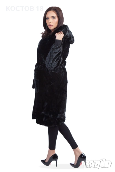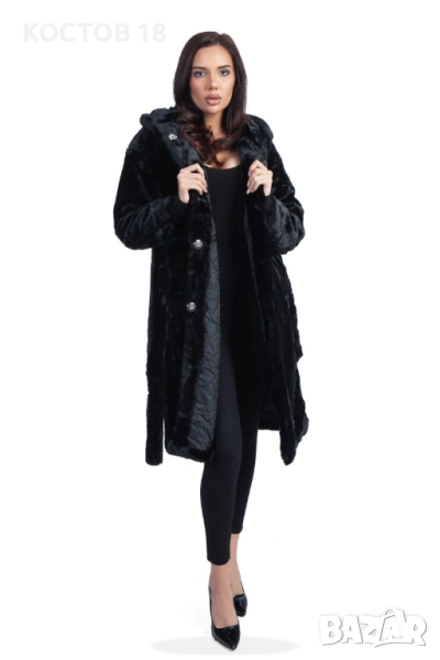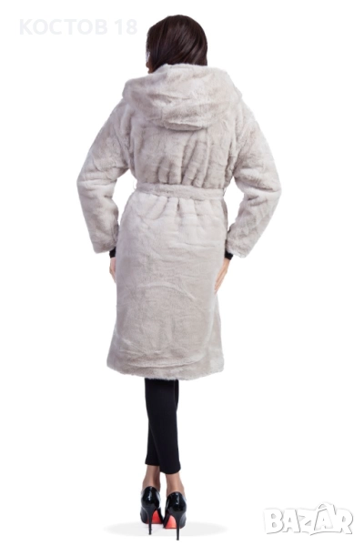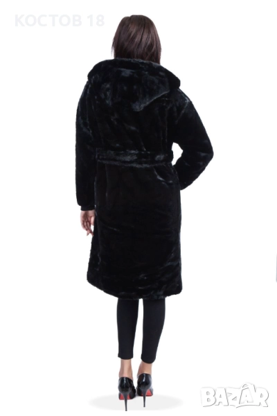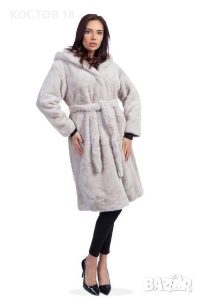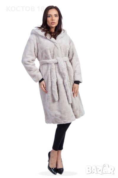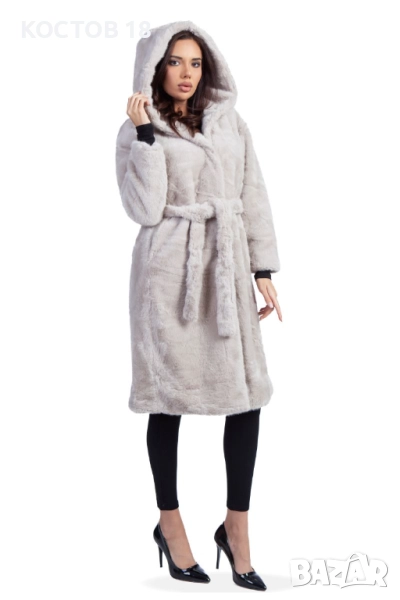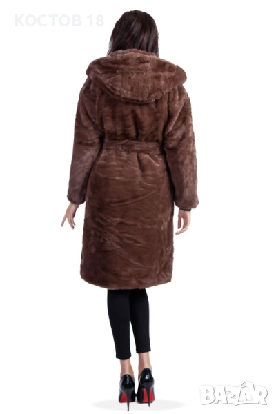 Елегантно дамско зимно палто от еко кожа в стилен кафяв цвят. Моделът е с колан на талията и удобна качулка, осигуряваща комфорт и топлина през студените дни. Изработено от висококачествена мека материя, която изглежда луксозно и се усеща приятно при носене. Подходящо както за ежедневието, така и за специални поводи.