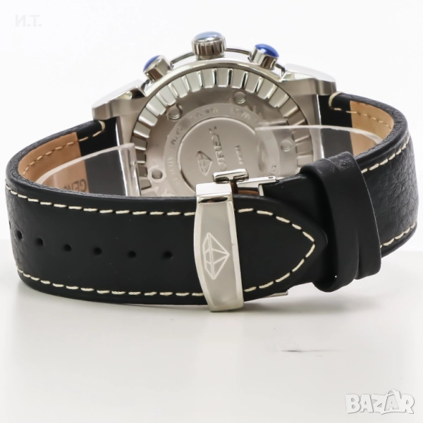 Гривна/каишка: Черна каишка от естествена кожа, ширина 22,5 мм, със закопчалка тип „пеперуда“. Дължина до 24 см