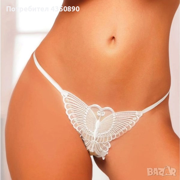 Еротично бельо, секси бели прашки с пеперуда и отворено дъно - Код: P1298 → Обява 51958515