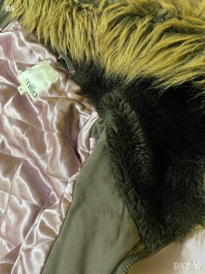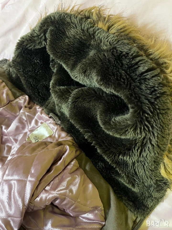 Дамско зимно яке с ватирана качулка и еко пух метални ципове размери M-L