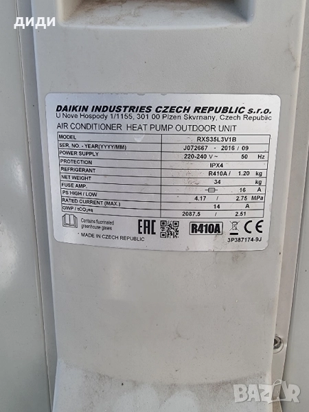 Daikin 12 отлично работещ демонтиран със събран фреон