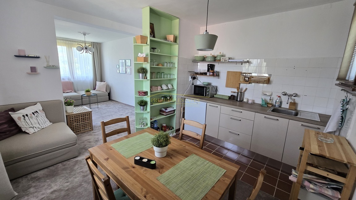 Разпределение: коридор, баня с тоалетна, спалня, всекидневна с кухненски бокс и балкон.
