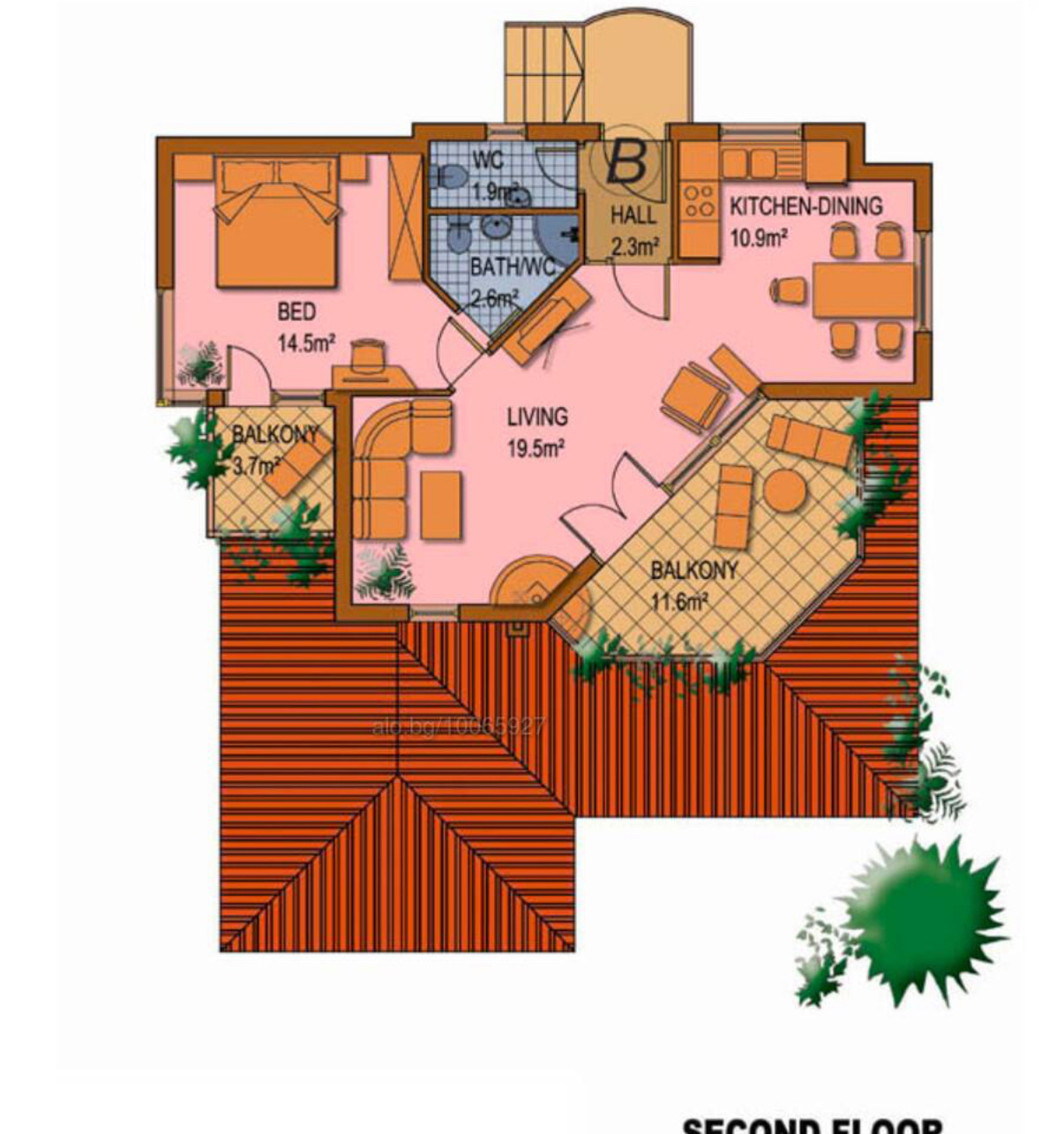 - голяма спалня с тераса и собствена баня с тоалетна,