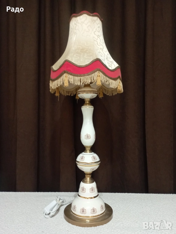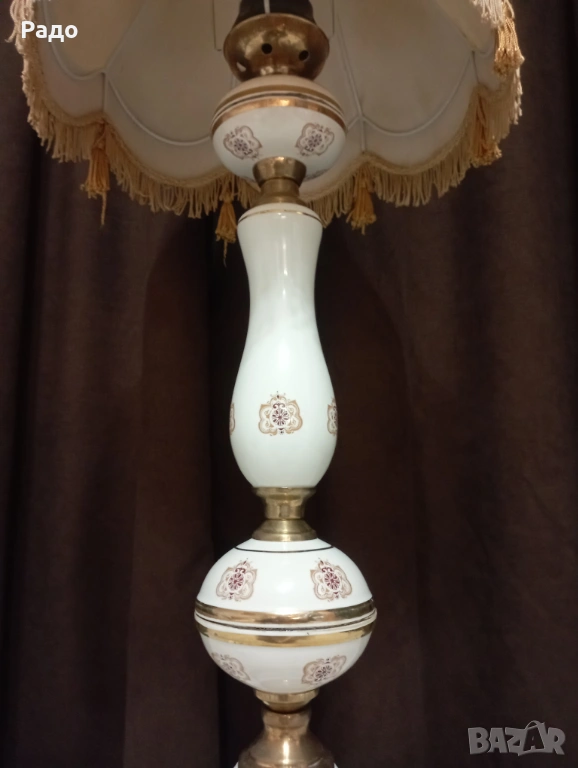 Голяма старинна порцеланова лампа с красив абажур → Обява 51959873