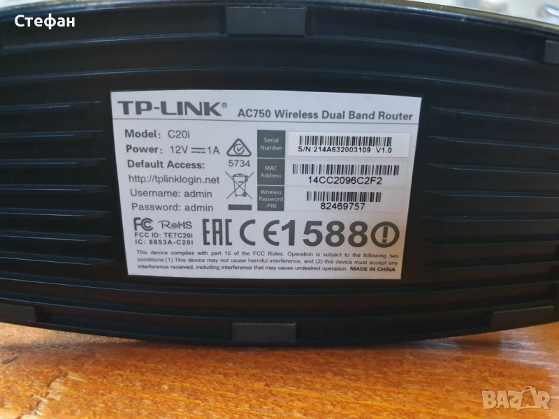 Безжичен двулентов рутер TP-LINK AC750 В отлично техническо и визуално състояние. С адаптер и кабел.