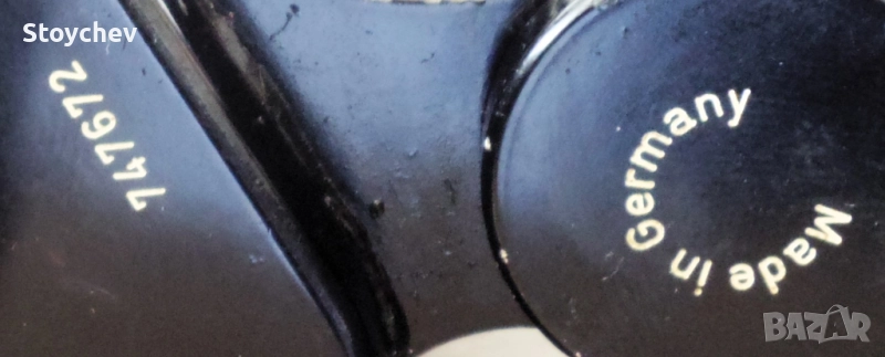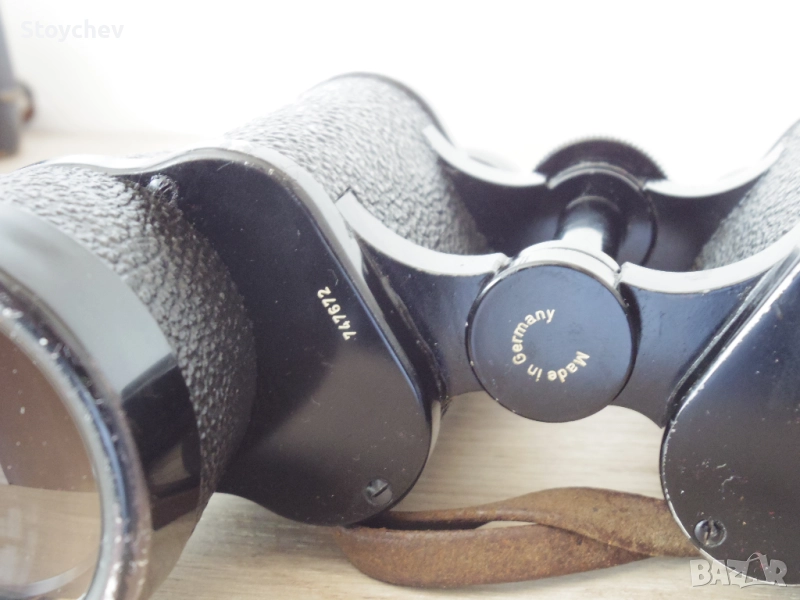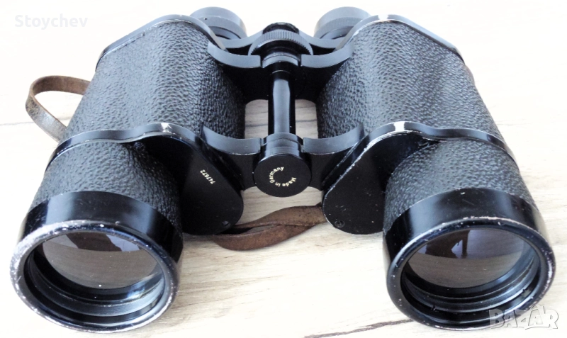 Профилактиран. Произвеждан в периода 1948-1963г., сериен номер 747672, период на производство 50-те години на миналия век. Цена при появата му на пазара 420 DM. Корпус със запазено покритие и леки следи от нормална употреба, цели бакелитови наочници, четливи надписи. Лещи и призми чисти, пренебрежимо малка люспа в края на едната призма (вижда се на снимката) без влюяние върху картината, централен фокус и диоптрична корекция работят коректно. Поле на видимост 128 на 1000 м., изходен лъч към зеницата 7.1 мм., тегло 980 гр. Окомплектовка: неоригинален футляр в много добро състояние и презвратен ремък. 370 лева. Намален 350.