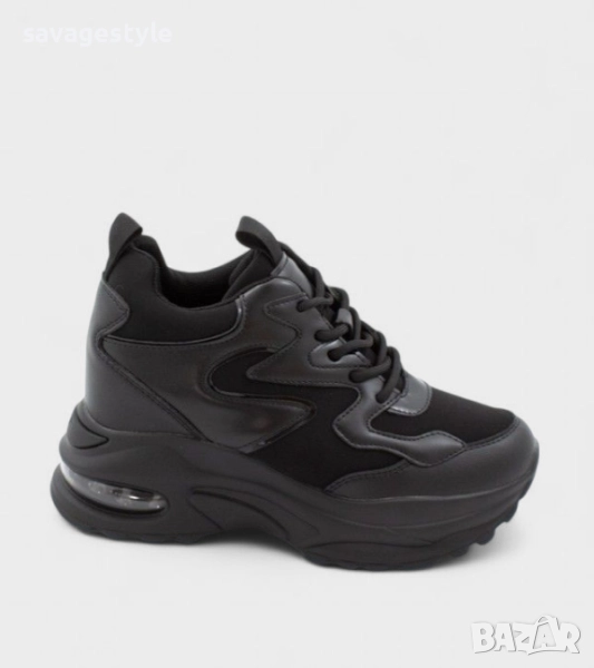 Дамски маратонки в черно с висока подметка → Обява 51960736